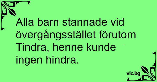 Alla barn stannade vid övergångsstället förutom Tindra, henne kunde ingen hindra.