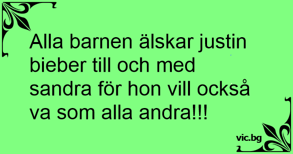 Alla barnen älskar justin bieber till och med sandra för hon vill också va som alla andra!!!