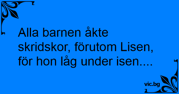 Alla barnen åkte skridskor, förutom Lisen, för hon låg under isen....