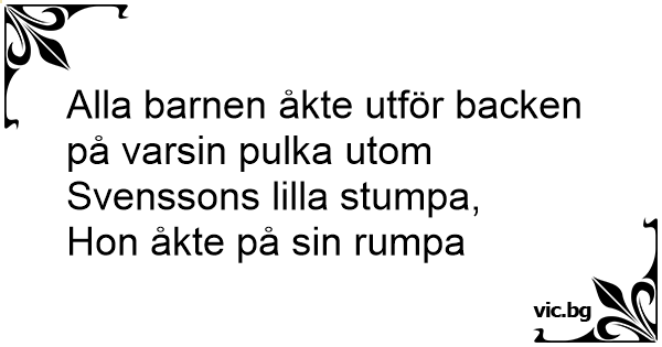 Alla barnen åkte utför backen på varsin pulka utom Svenssons lilla stumpa,