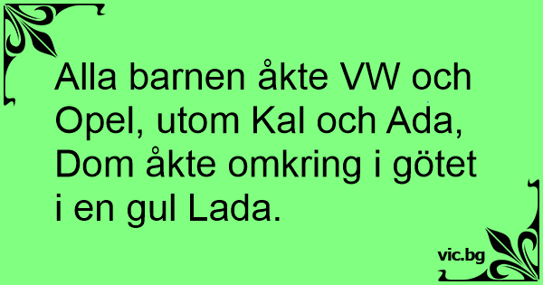 Alla barnen åkte VW och Opel, utom Kal och Ada,