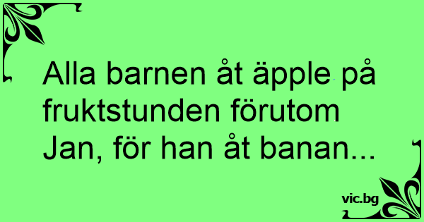Alla barnen åt äpple på fruktstunden förutom Jan, för han åt banan...