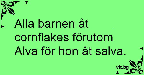 Alla barnen åt cornflakes förutom Alva för hon åt salva.