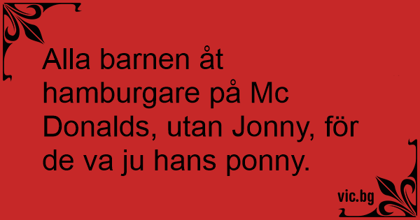 Alla barnen åt hamburgare på Mc Donalds, utan Jonny, för de va ju hans ponny.