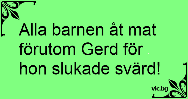 Български English Deutsch Español Русский Français Italiano Ελληνικά Македонски Türkçe Українська Português Polski Alla barnen åt mat förutom Gerd för hon slukade svärd! Nederlands Dansk Norsk Suomi Magyar Româna Čeština Lietuvių Latviešu Hrvatski