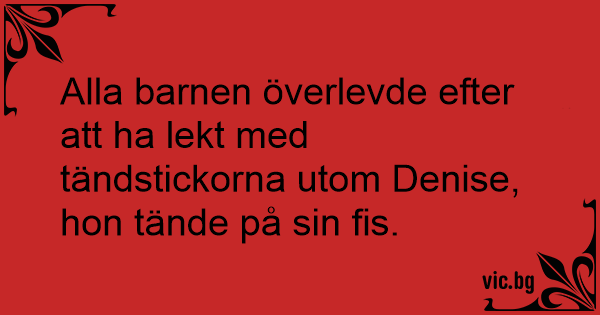 Alla barnen överlevde efter att ha lekt med tändstickorna utom Denise, hon tände på sin fis.
