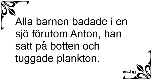 Alla barnen badade i en sjö förutom Anton, han satt på botten och tuggade plankton.