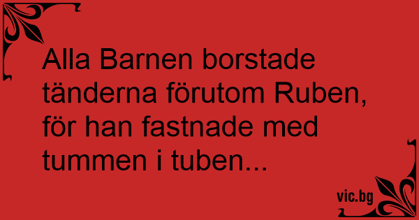 Alla Barnen borstade tänderna förutom Ruben, för han fastnade med tummen i tuben... 64 0 0 Alla barnen-skämt Tandläkarvitsar