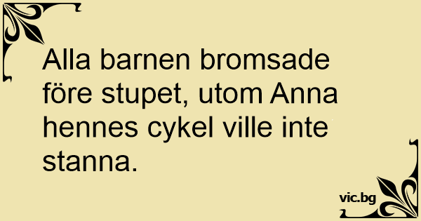 Alla barnen bromsade före stupet, utom Anna hennes cykel ville inte stanna.