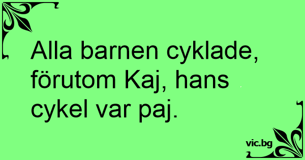 Alla barnen cyklade, förutom Kaj, hans cykel var paj.