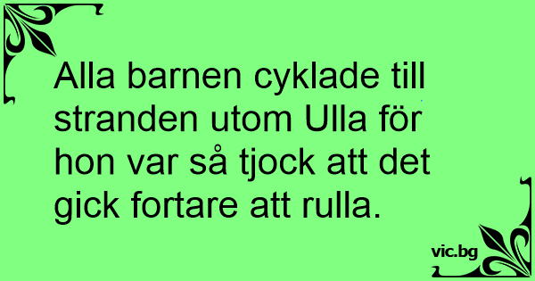 Alla barnen cyklade till stranden utom Ulla för hon var så tjock att det gick fortare att rulla.