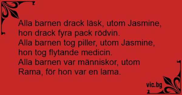 Alla barnen drack läsk, utom Jasmine, hon drack fyra pack rödvin.