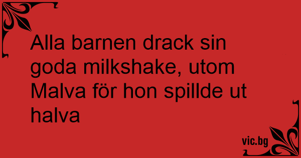 Alla barnen drack sin goda milkshake, utom Malva för hon spillde ut halva
