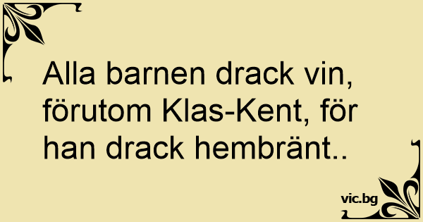 Alla barnen drack vin, förutom Klas-Kent, för han drack hembränt..