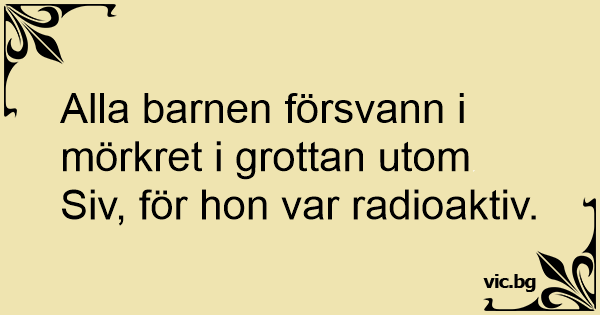 Alla barnen försvann i mörkret i grottan utom Siv, för hon var radioaktiv.