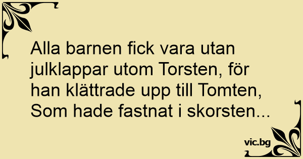 Alla barnen fiск vara utan julklappar utom Torsten, för han klättrade upp till Tomten,