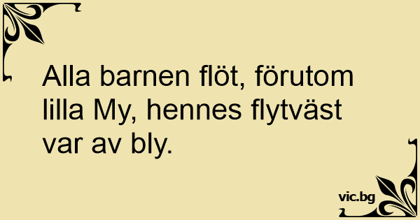 Alla barnen flöt, förutom lilla My, hennes flytväst var av bly.