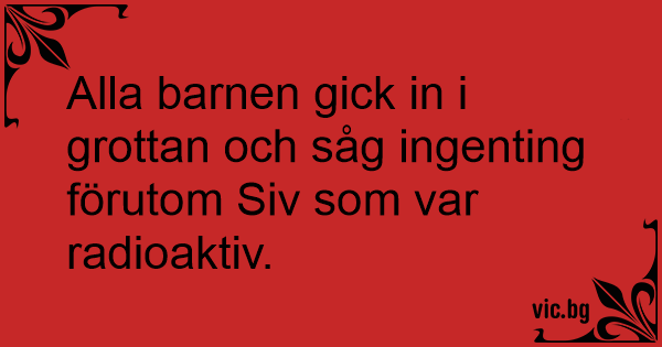 Alla barnen gick in i grottan och såg ingenting förutom Siv som var radioaktiv.