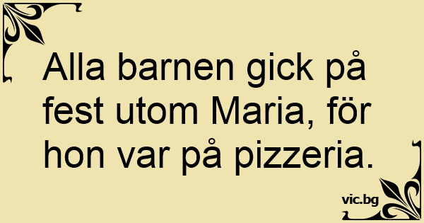 Alla barnen gick på fest utom Maria, för hon var på pizzeria.