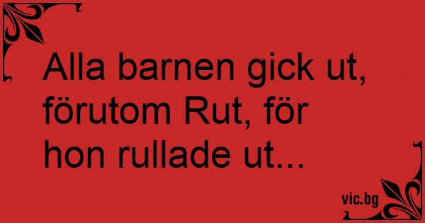 Alla barnen gick ut, förutom Rut, för hon rullade ut...