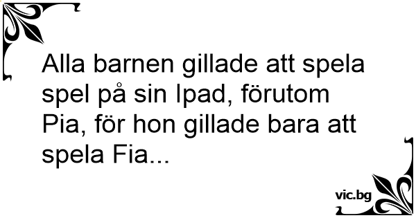 Alla barnen gillade att spela spel på sin Ipad, förutom Pia, för hon gillade bara att spela Fia...