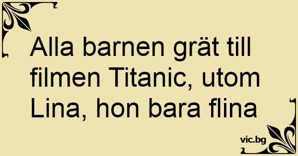 Alla barnen grät till filmen Titanic, utom Lina, hon bara flina