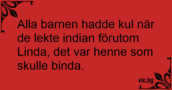 Alla barnen hadde kul när de lekte indian förutom Linda, det var henne som skulle binda.