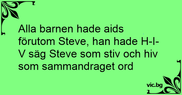 Alla barnen hade aids förutom Steve, han hade H-I-V säg Steve som stiv och hiv som sammandraget ord