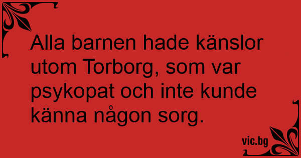 Alla barnen hade känslor utom Torborg, som var psykopat och inte kunde känna någon sorg.