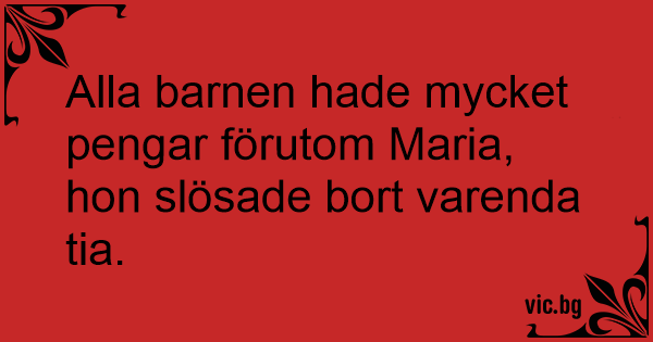 Alla barnen hade mycket pengar förutom Maria, hon slösade bort varenda tia.