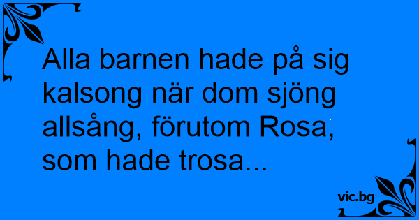 Alla barnen hade på sig kalsong när dom sjöng allsång, förutom Rosa, som hade trosa...