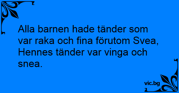 Alla barnen hade tänder som var raka och fina förutom Svea,
