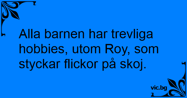 Alla barnen har trevliga hobbies, utom Roy, som styckar flickor på skoj.