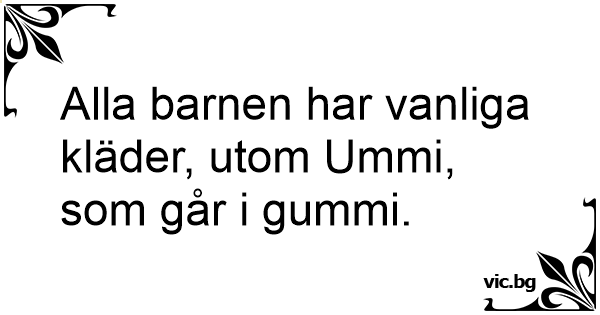 Alla barnen har vanliga kläder, utom Ummi, som går i gummi.