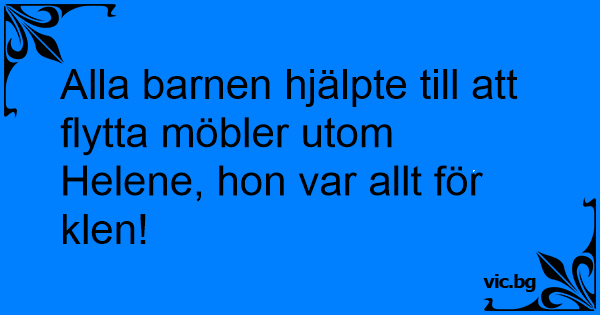 Alla barnen hjälpte till att flytta möbler utom Helene, hon var allt för klen!