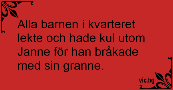 Alla barnen i kvarteret lekte och hade kul utom Janne för han bråkade med sin granne.
