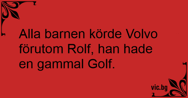 Alla barnen körde Volvo förutom Rolf, han hade en gammal Golf.