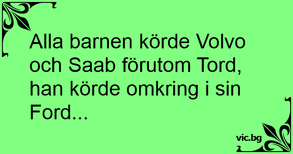 Alla barnen körde Volvo och Saab förutom Tord, han körde omkring i sin Ford...