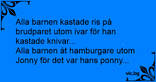 Alla barnen kastade ris på brudparet utom ivar för han kastade knivar...