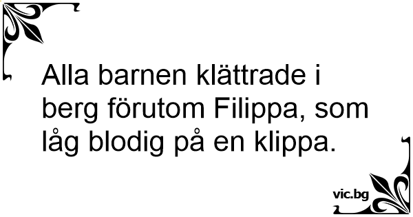 Alla barnen klättrade i berg förutom Filippa, som låg blodig på en klippa.