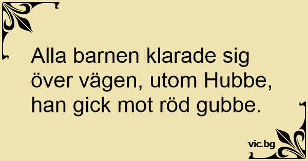 Alla barnen klarade sig över vägen, utom Hubbe, han gick mot röd gubbe.