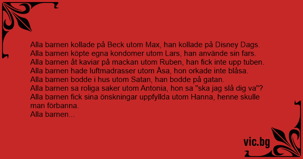 Alla barnen hade rena kalsonger utom Andre, han hade diare.