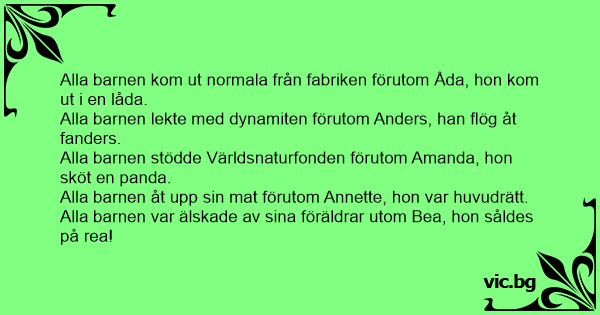 Alla barnen lekte med dynamiten förutom Anders, han flög åt fanders.