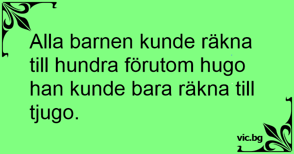Alla barnen kunde räkna till hundra förutom hugo han kunde bara räkna till tjugo.