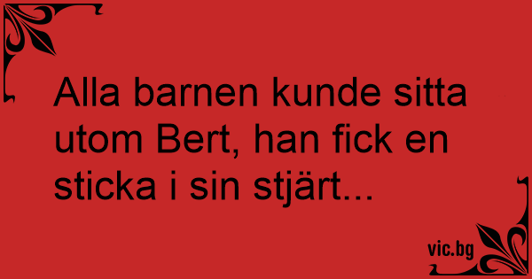 Alla barnen kunde sitta utom Bert, han fiск en sticka i sin stjärt...