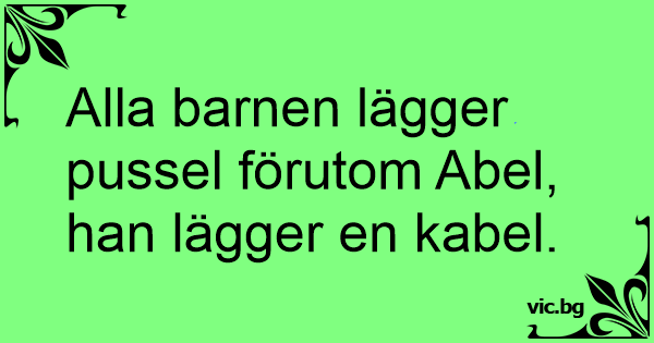 Alla barnen lägger pussel förutom Abel, han lägger en kabel.