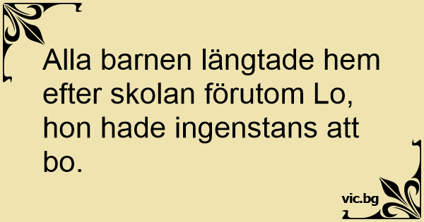 Alla barnen längtade hem efter skolan förutom Lo, hon hade ingenstans att bo.