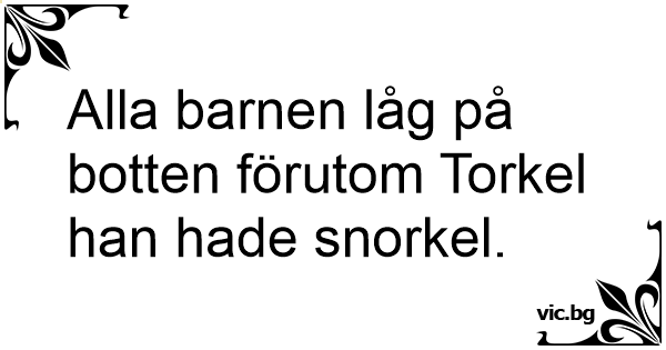 Alla barnen låg på botten förutom Torkel han hade snorkel.