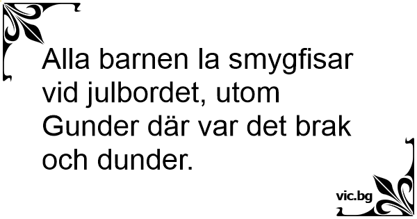 Alla barnen la smygfisar vid julbordet, utom Gunder där var det brak och dunder.