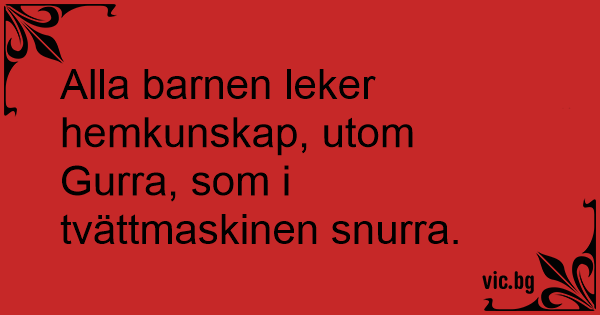 Alla barnen leker hemkunskap, utom Gurra, som i tvättmaskinen snurra.